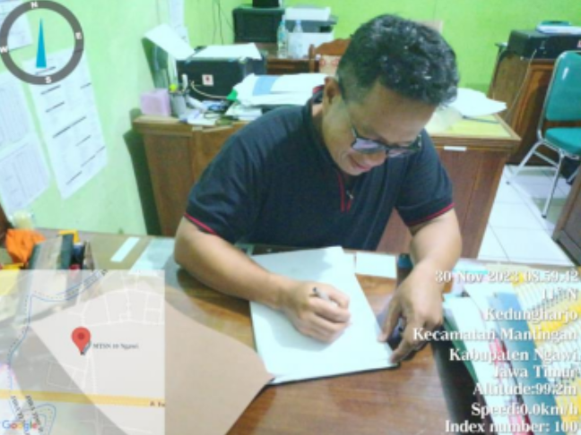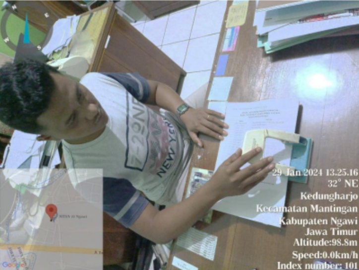 Foto di atas menggambarkan seorang tenaga kependidikan MTsN 10 Ngawi yang sedang melakukan
