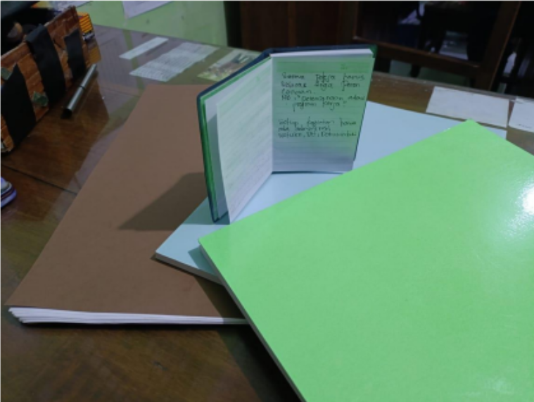 Foto dokumentasi diatas diambil pada hari Senin tanggal 8 Januari 2024, foto tersebut merupakan buku catatan dan ulangan dari siswa yang bernama Habib kelas 7A dengan tujuan untuk penghematan dan mengurangi sampah. Ini adalah salah satu cara untuk menjaga lingkungan MTsN 10 Ngawi.