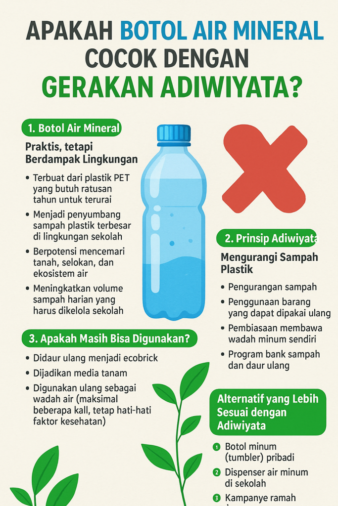 Dalam konteks Adiwiyata, penggunaan botol plastik sekali pakai justru berlawanan dengan tujuan lingkungan berkelanjutan.
